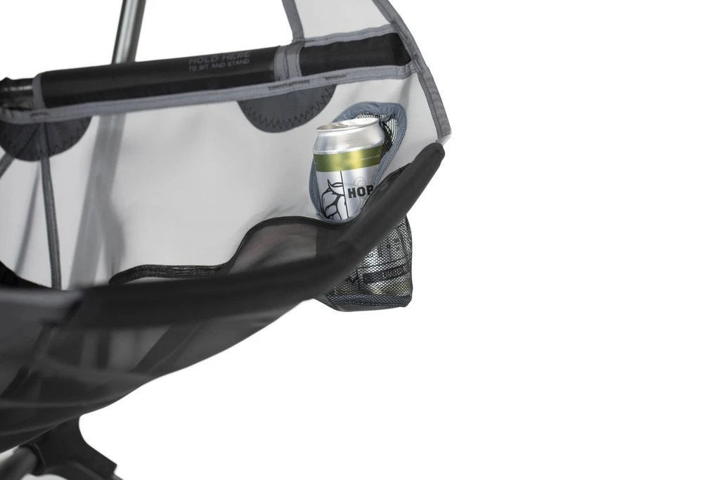 Une fois repliée, la chaise tient dans sa housse de transport de 60 x 17 x 17 cm, pour un poids de 3,23 kg.