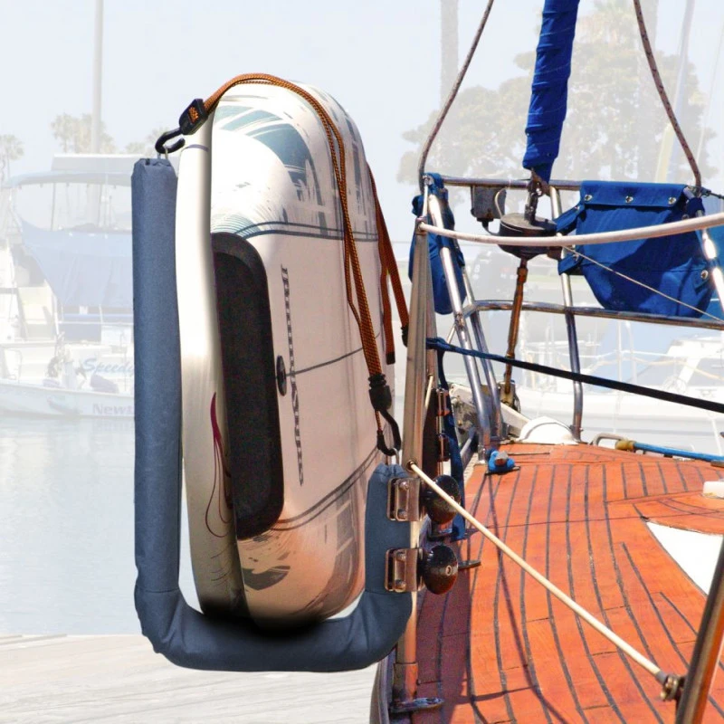 Montage sans outils, s’adapte aux dimensions des kayaks , SUP ou autres engins à tracter (jusqu’à 3 SUP standards).